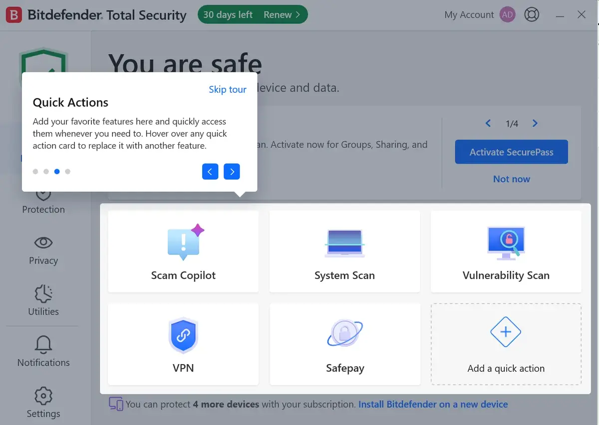 Instalace probíhá během několika minut a hned po spuštění Bitdefender Antivirus provede rychlý úvodní sken systému. Během testování jsme zkoušeli reálné scénáře – stahování souborů, otevírání e-mailových příloh i návštěvu rizikových stránek. Bitdefender všechny hrozby zastavil ještě před tím, než se dostaly do počítače.