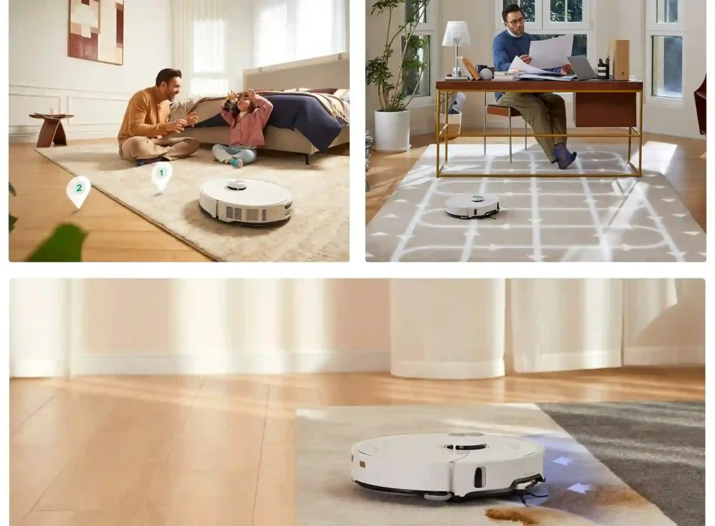 Zařízení inteligentně řídí proces úklidu. Systém VibraRise® 3.0 automaticky zvedne mop do výšky 20 mm po detekci koberce, čímž zabrání jeho namočení. Zároveň technologie Carpet Boost+ zvýší sací výkon, aby důkladně vyčistila koberec. Po sjetí na tvrdou podlahu se mop opět spustí a pokračuje v práci.